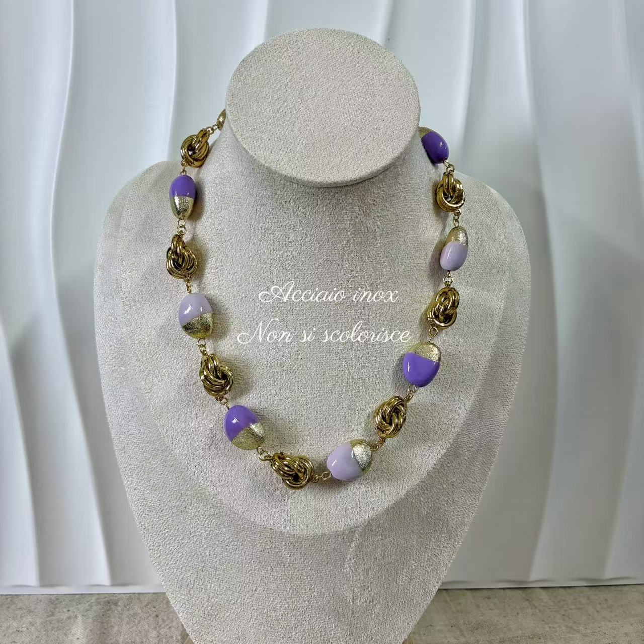 (C039) COLLANA LILLA GIROCOLLO IN ACCIAIO INOX E RESINA