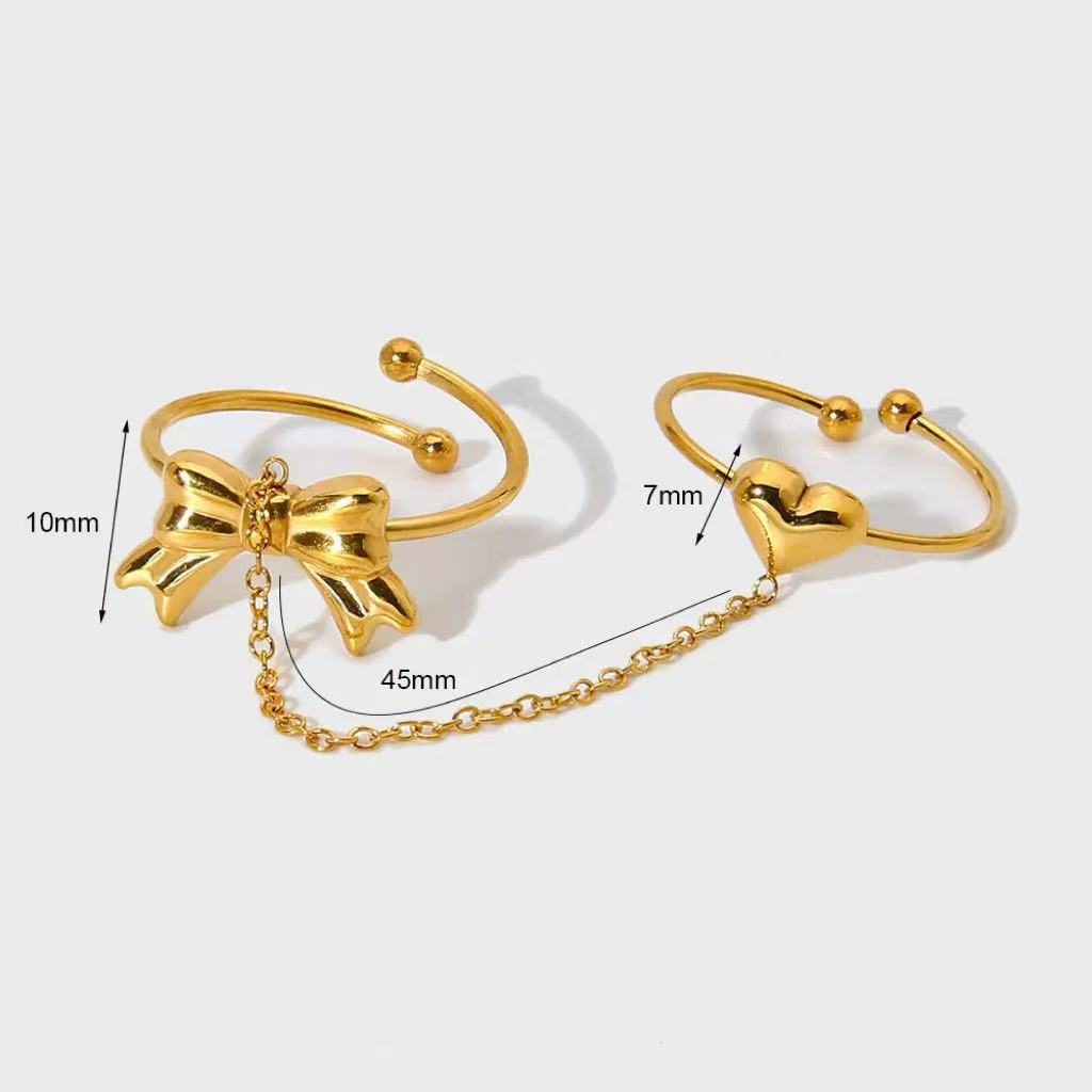 ✨ Anelli Doppi con Fiocco e Cuore — Romanticismo Moderno e Dettagli Delicati