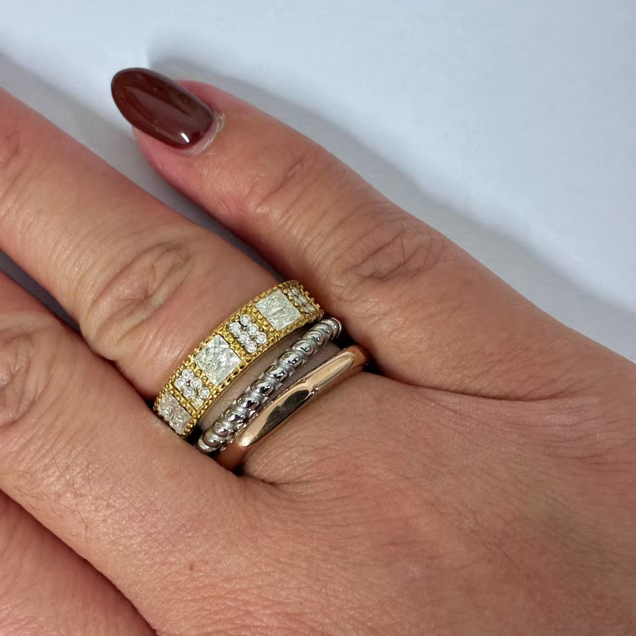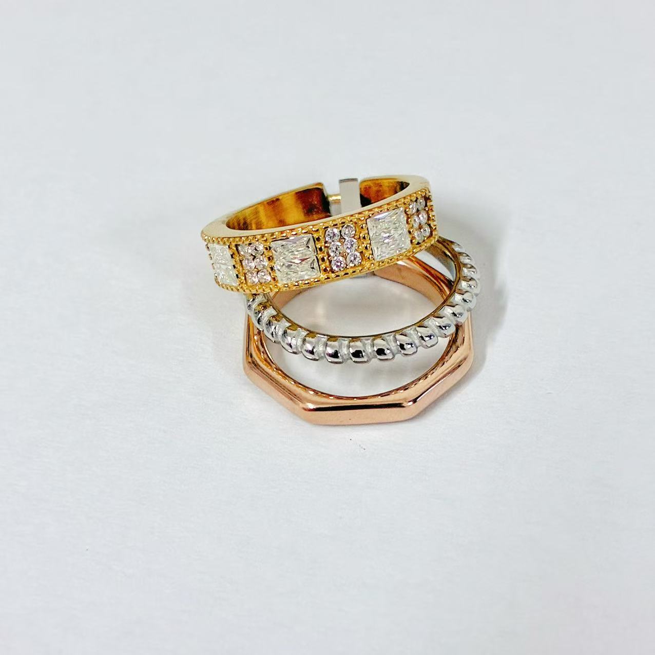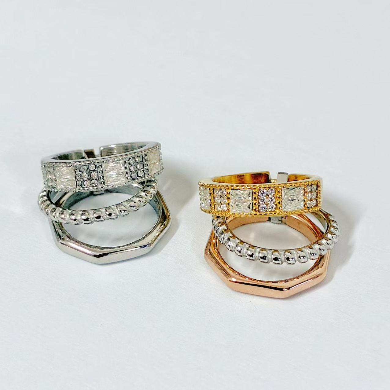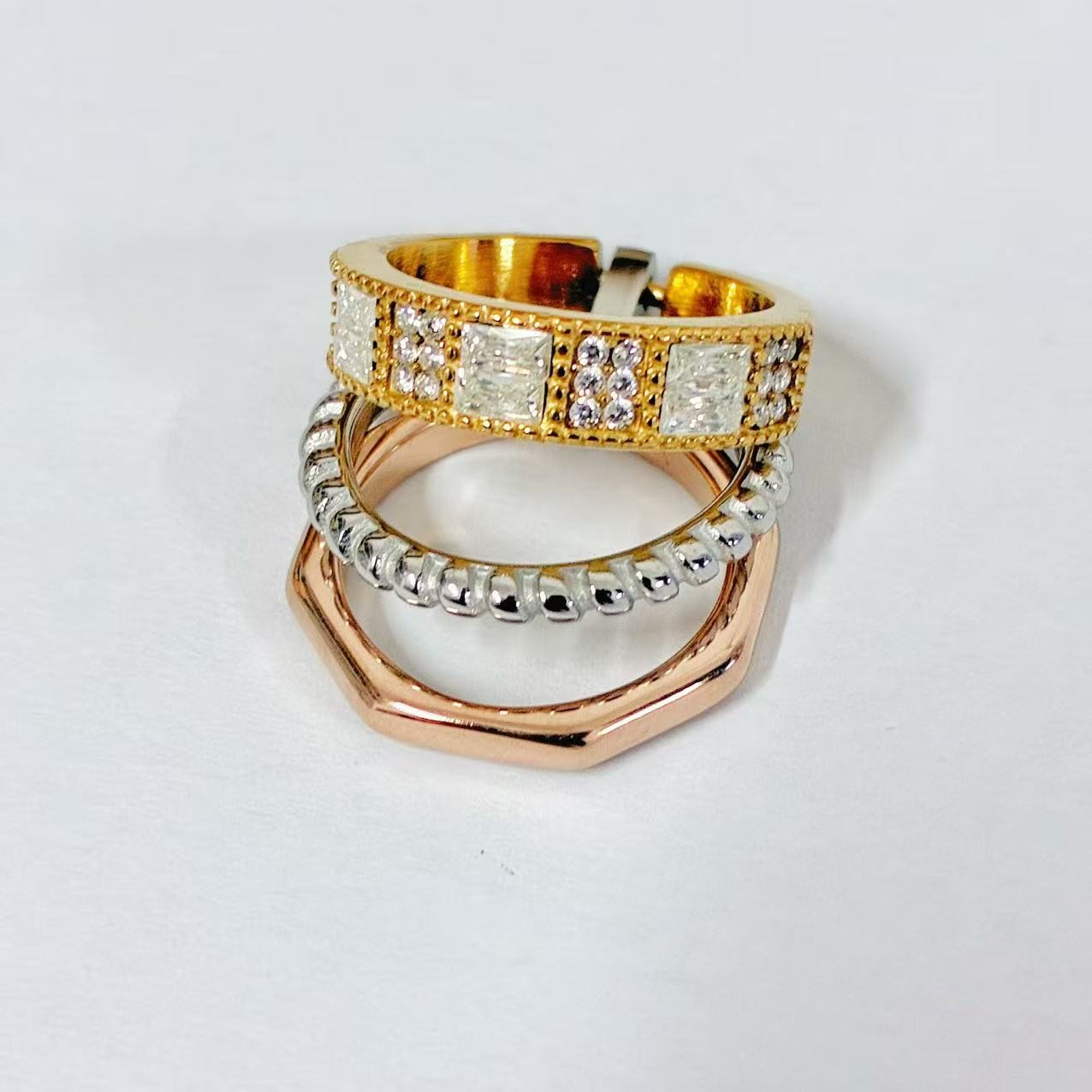Un set raffinato che unisce tre anime diverse in unāunica armonia: la fascia tempestata di zirconi brillanti, lāanello a sfere che dona movimento e quello geometrico dal profilo deciso. In acciaio inossidabile, questi anelli catturano la luce con ogni gesto, diventando protagonisti assoluti di uno stile elegante e contemporaneo.