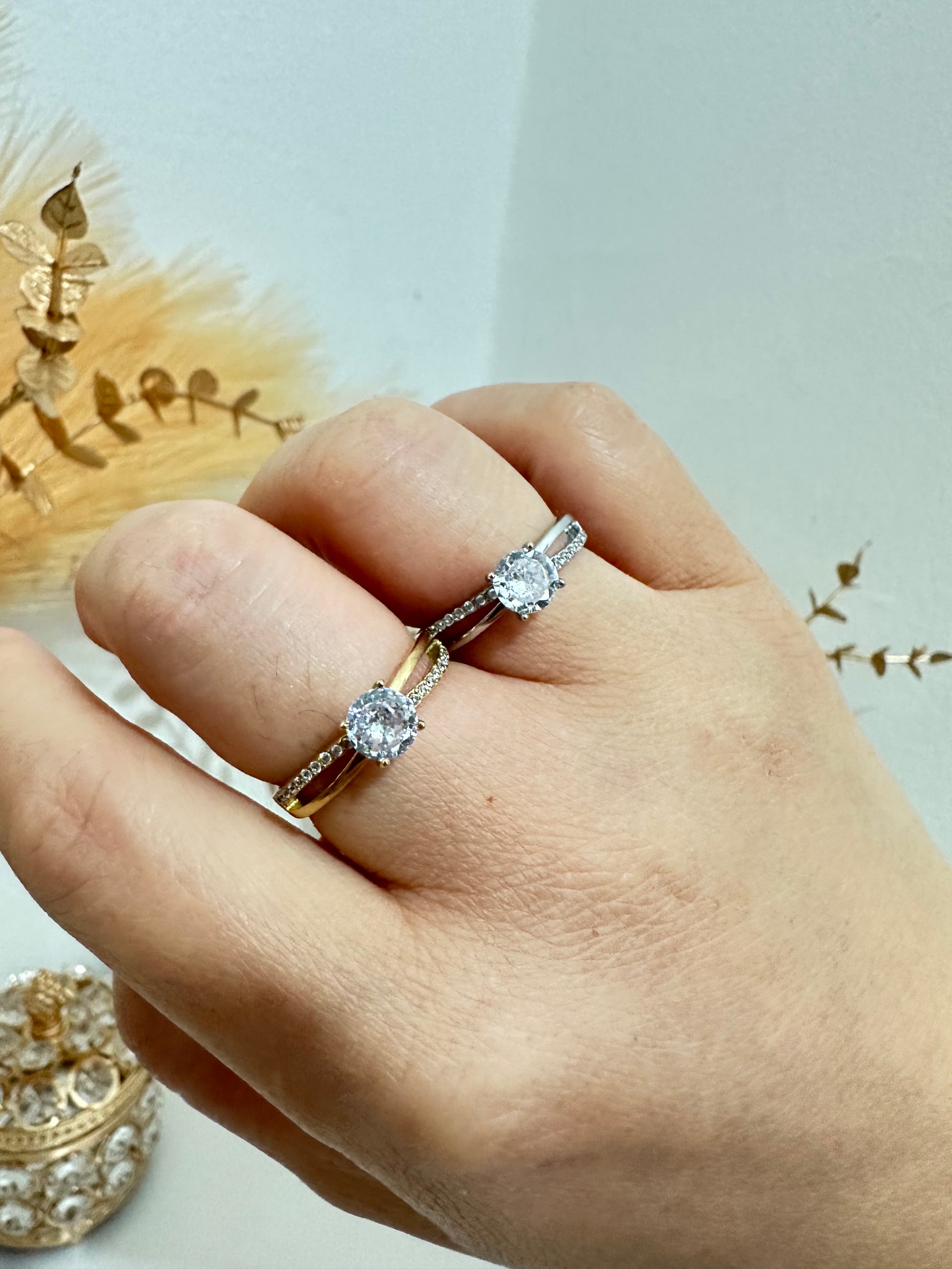 Anello con zirconi regolabile in acciaio inox (A63)