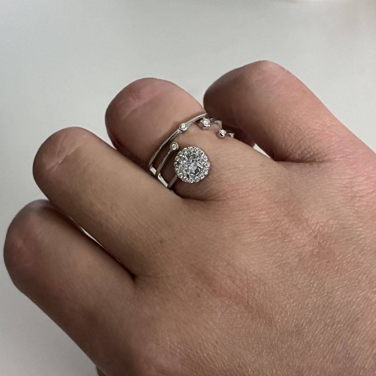 Un anello che sembra catturare il cielo stellato: al centro, un cristallo rotondo brillante, circondato da piccoli zirconi che ne amplificano la luminosità . Le due fasce, arricchite da dettagli scintillanti, donano al design un’eleganza moderna e raffinata. Realizzato in acciaio inossidabile e disponibile in placcatura oro o argento, combina resistenza e splendore senza tempo.