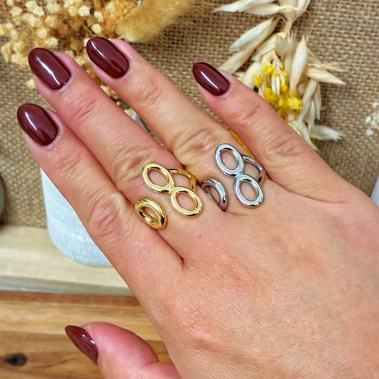 Un design moderno e scultoreo che gioca con la forma ovale, simbolo di continuità e armonia senza fine. Le due ellissi, sovrapposte in equilibrio perfetto, creano un effetto tridimensionale luminoso e audace, rendendo questo anello una scelta raffinata per chi ama distinguersi.