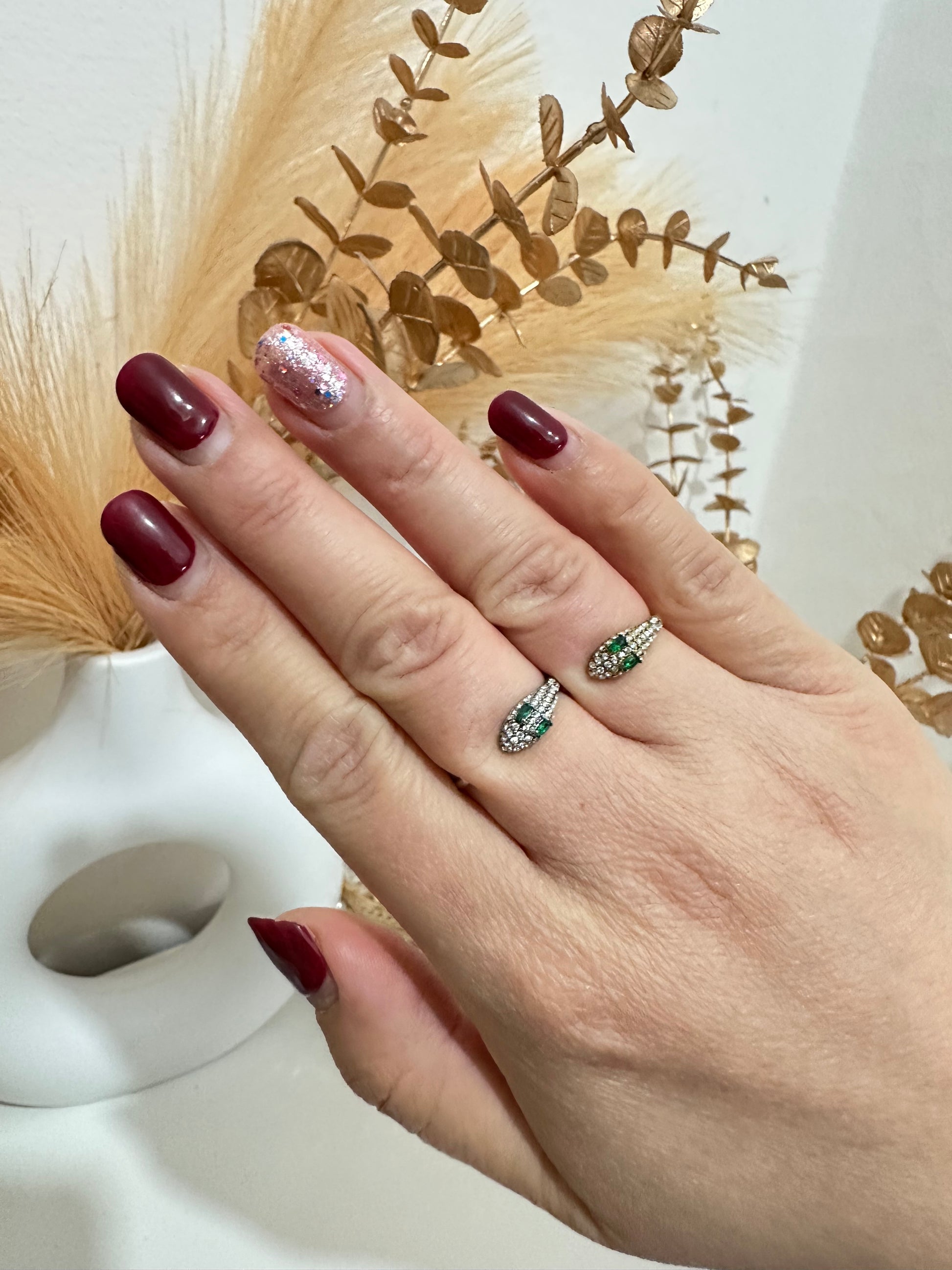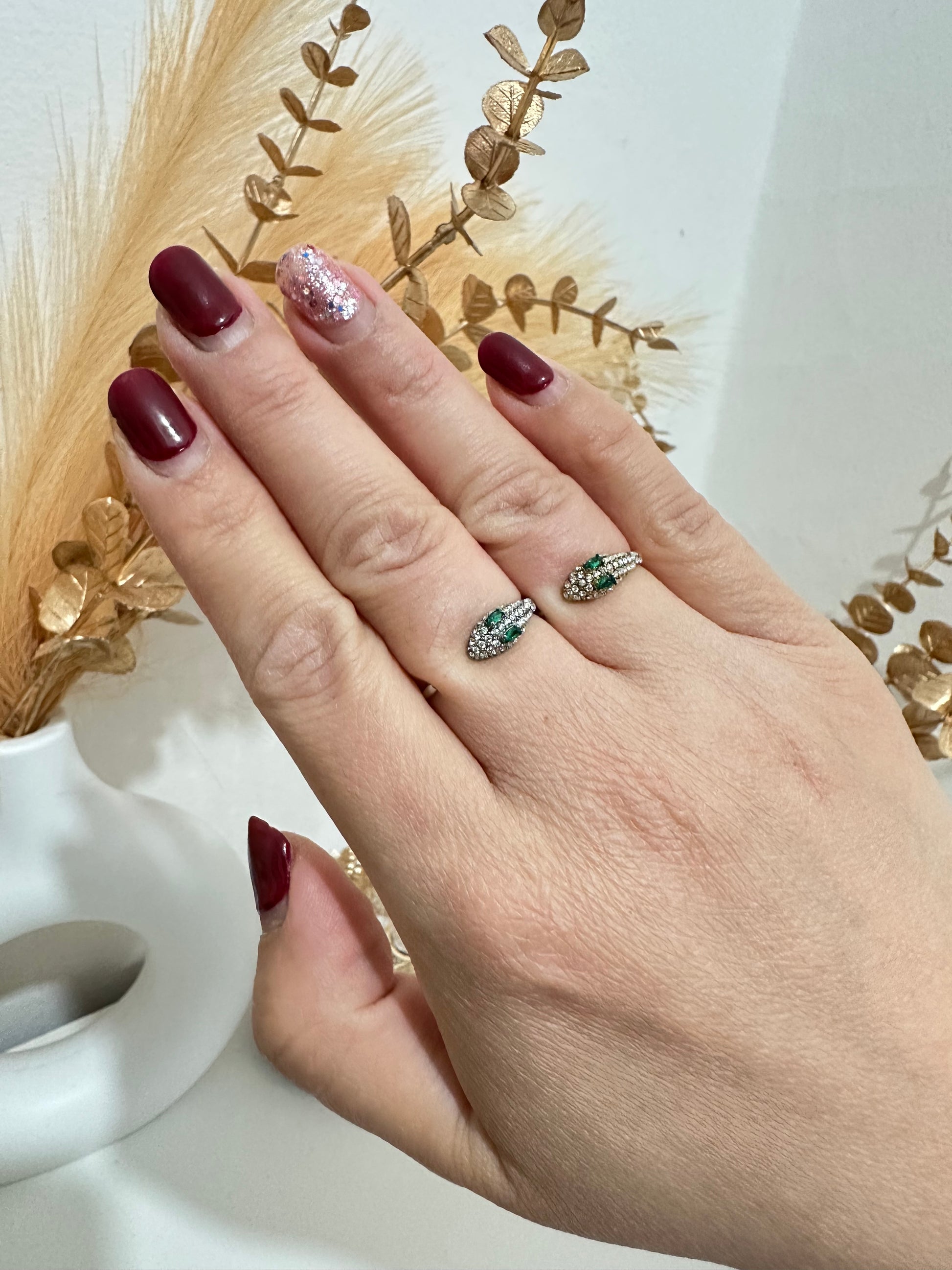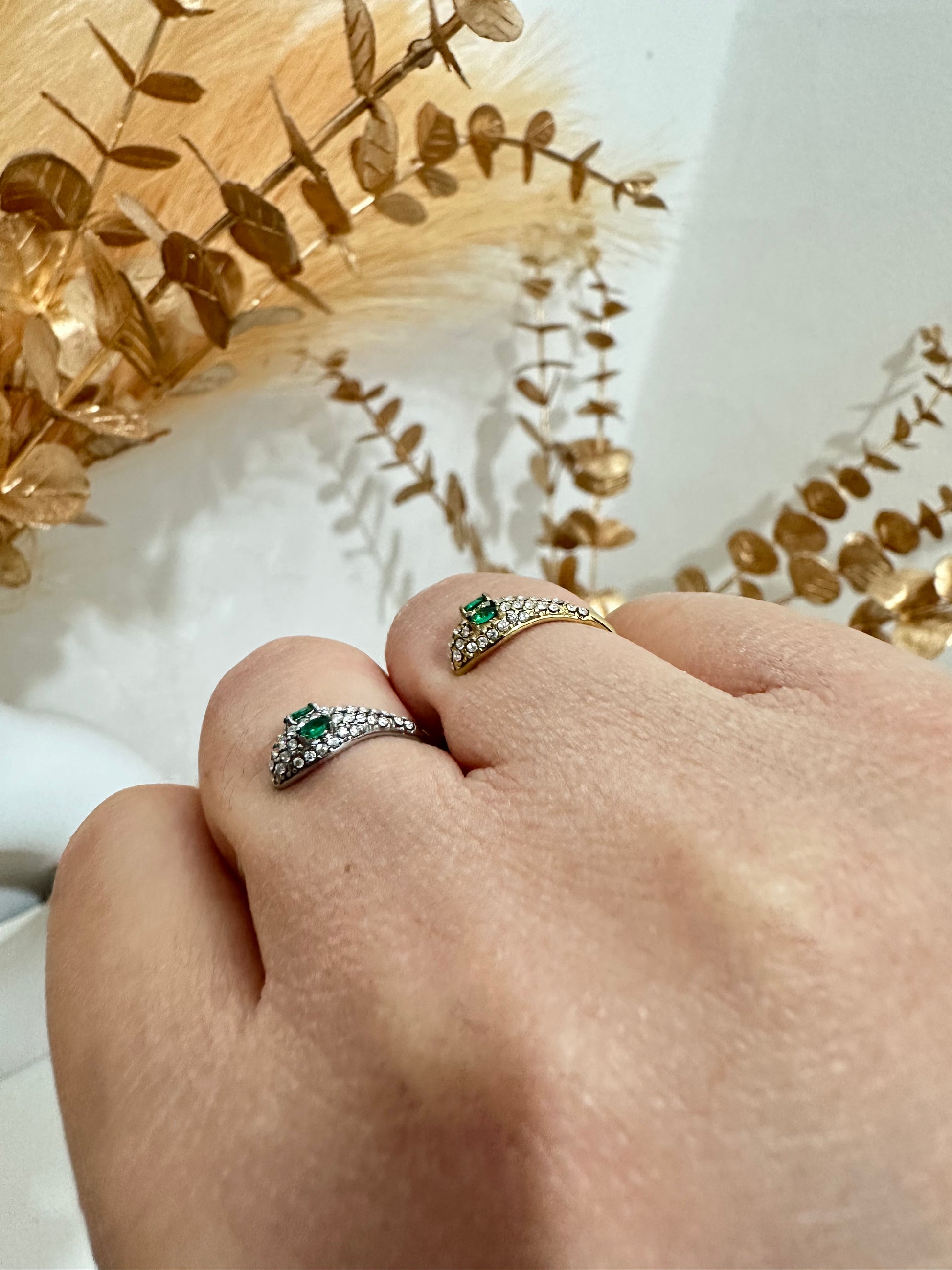 Anello serpente strass regolabile in acciaio inox (A46)