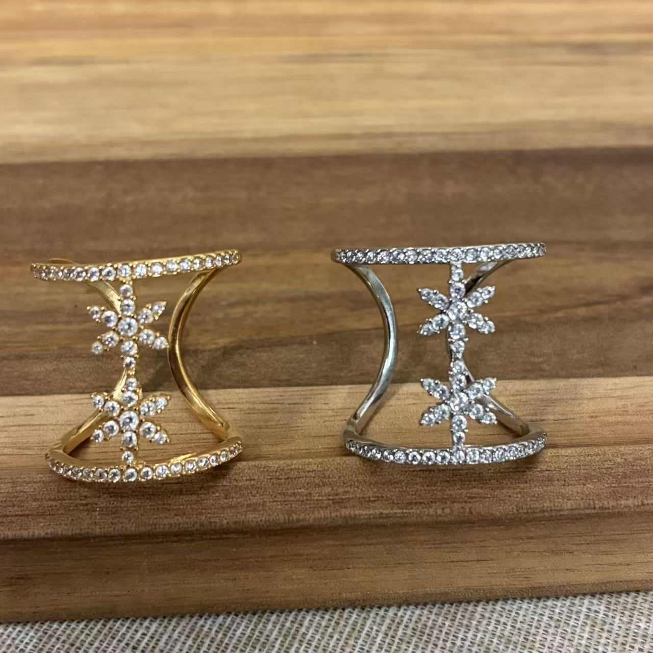 Un anello che cattura la magia delle stelle: luminoso, sofisticato e irresistibile. La sua struttura aperta, arricchita da cristalli scintillanti, dona luce e raffinatezza a ogni gesto. Disponibile in versione dorata e argentata.