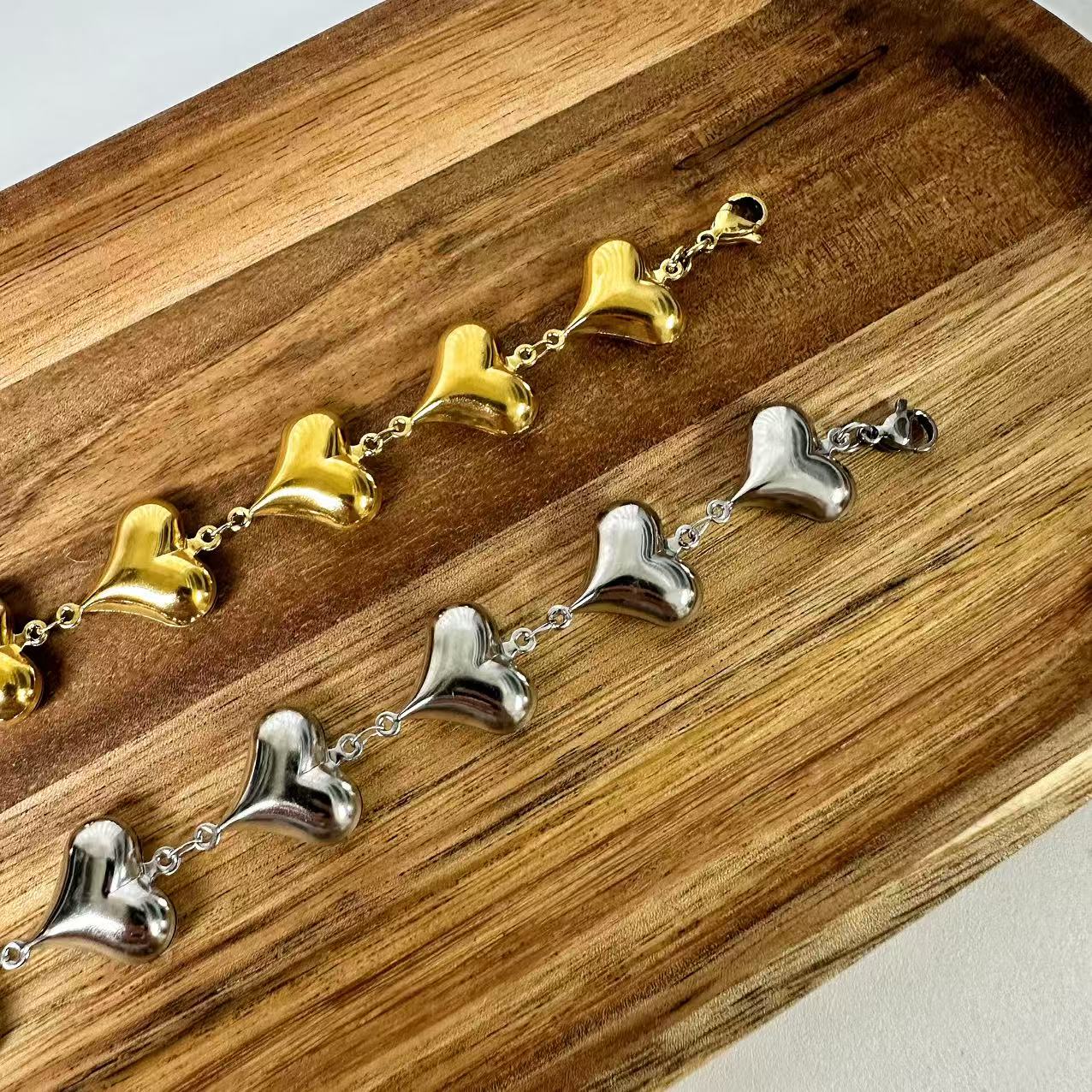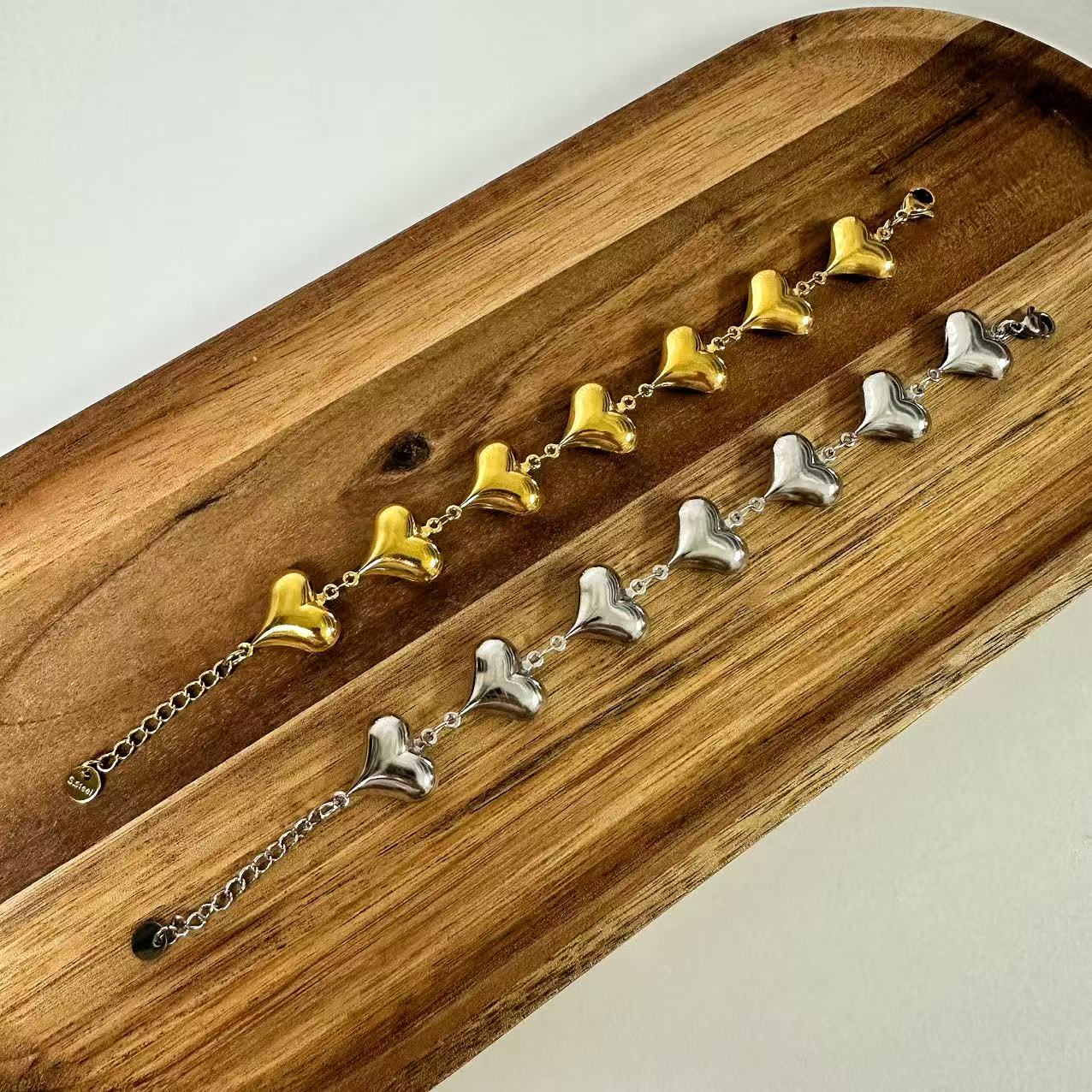 (B069) BRACCIALE DONNA CON CUORI IN ACCIAIO INOX