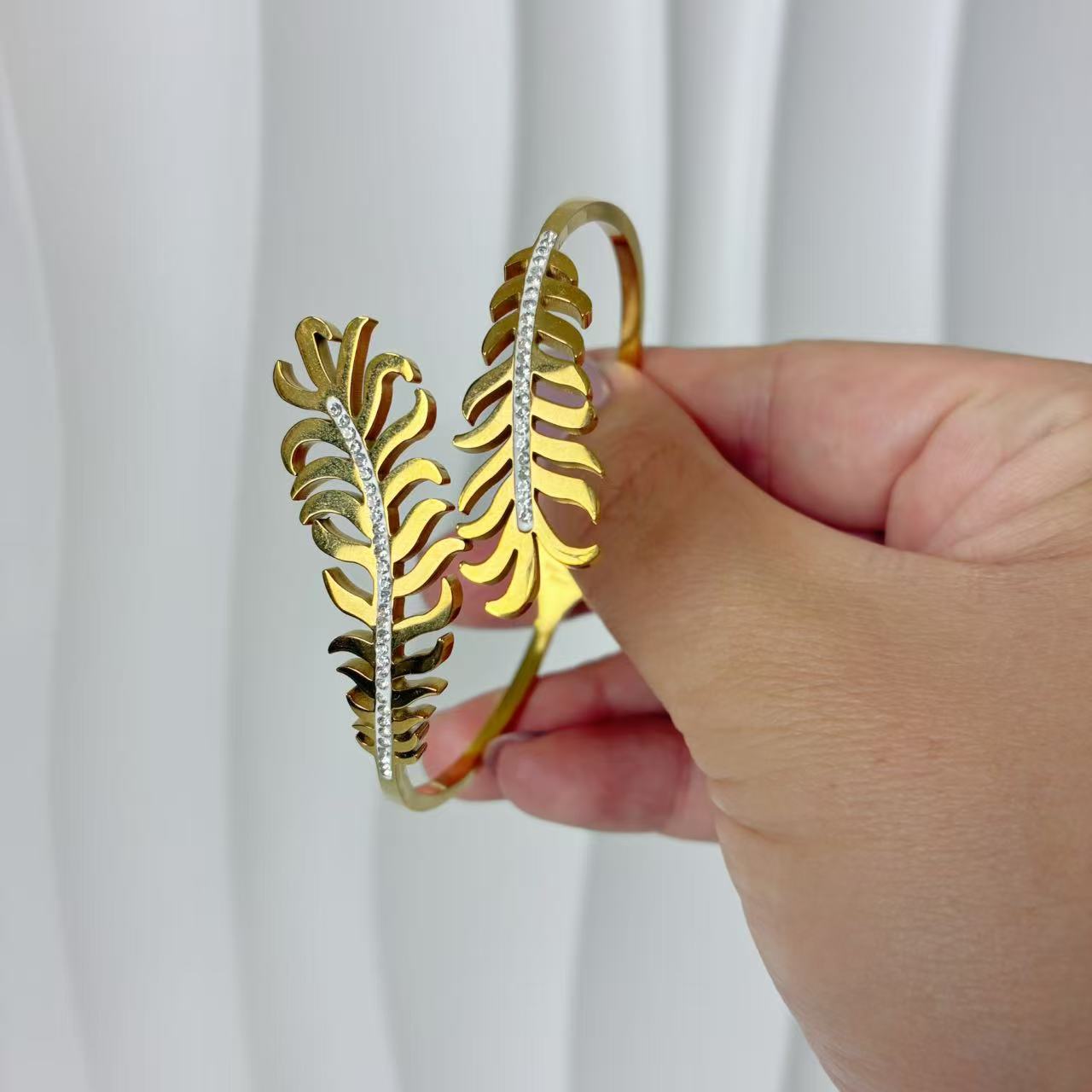 (B146)Bracciale rigido donna con molla foglie in acciaio inox