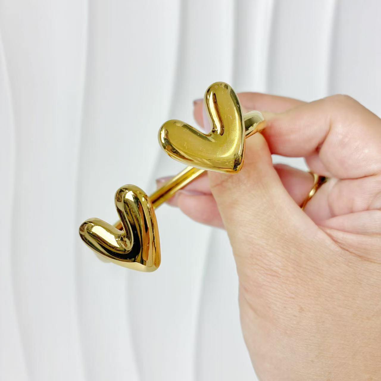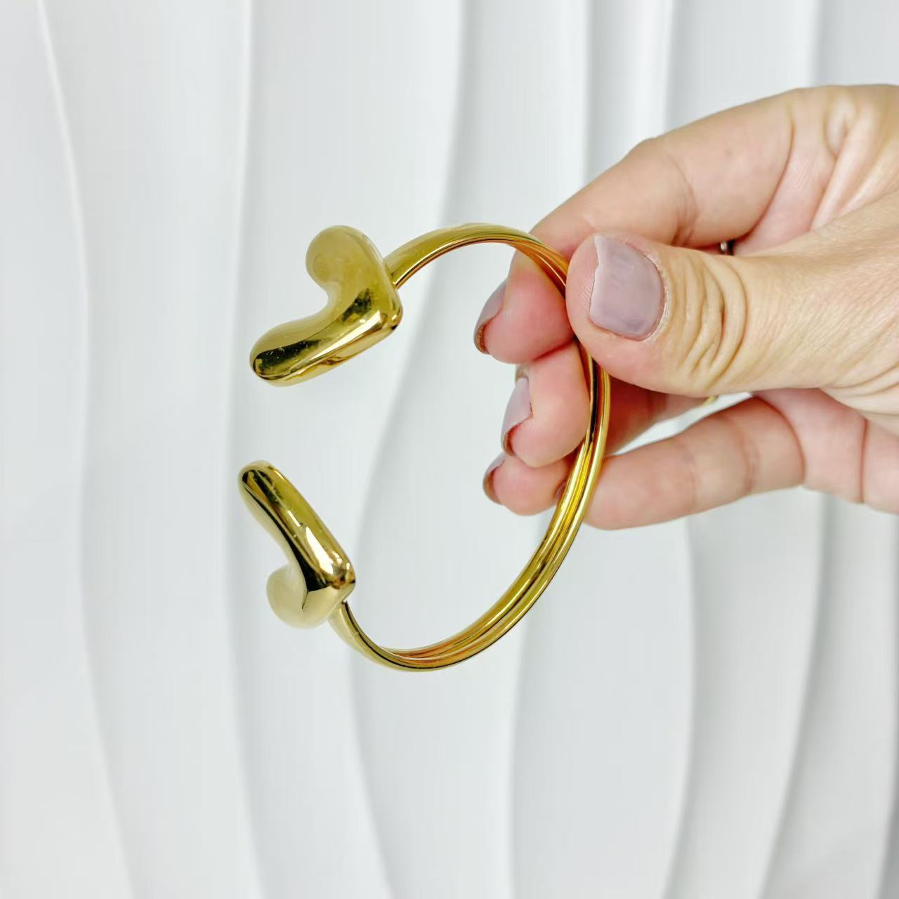 (B150)Bracciale donna semirigido cuori in acciaio inox