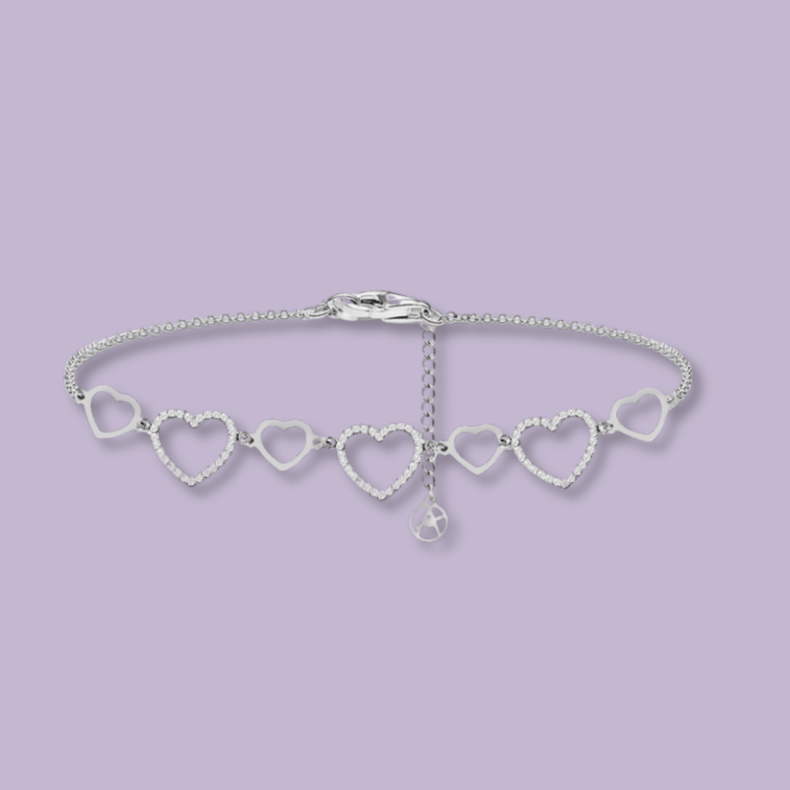(B163)Bracciale cuoricinicon pave' in acciaio inox