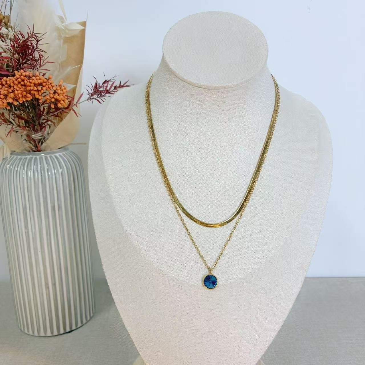 COLLANA DOPPIA SNACK E PUNTO LUCE COLORATO IN ACCIAIO INOX