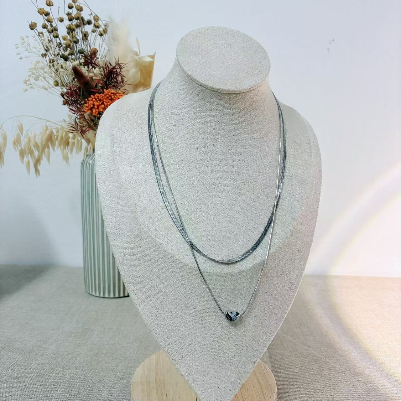 COLLANA DOPPIO FILO SNACK E CUORE IN ACCIAIO INOX DA DONNA