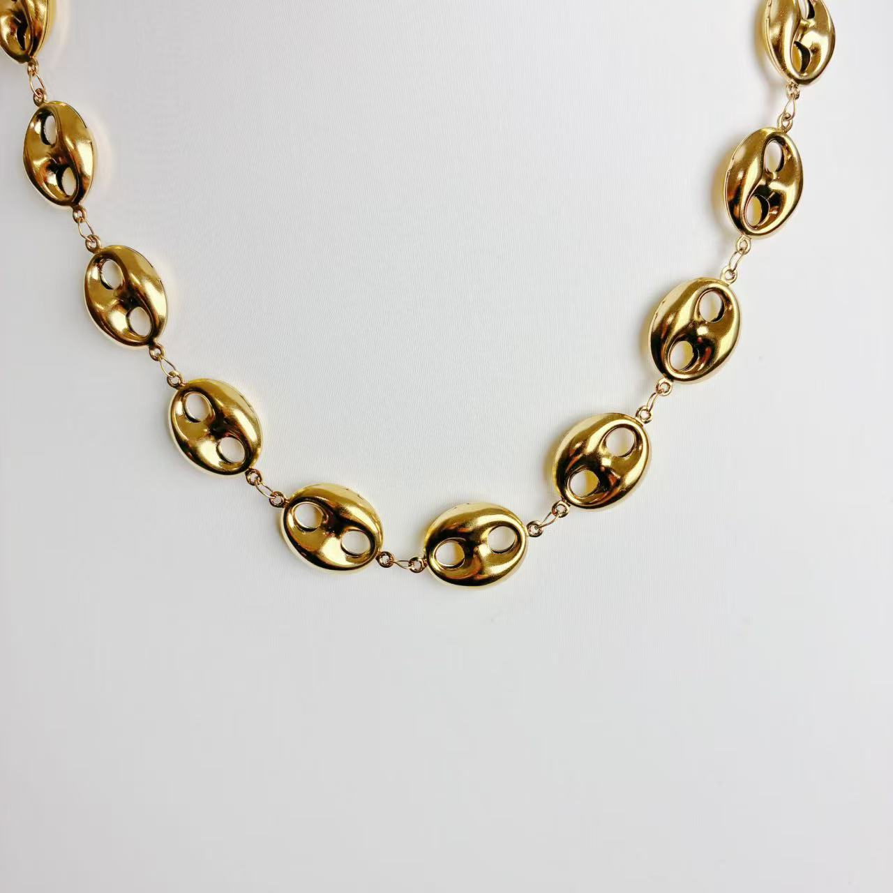 Una collana dall’allure moderna e audace, composta da elementi ovali lucidi che si susseguono in una sequenza armoniosa. Ogni maglia, scolpita con aperture morbide e forme sinuose, crea un gioco di pieni e vuoti che dona dinamismo e raffinatezza al design. Realizzata interamente in acciaio inossidabile, è un accessorio che cattura lo sguardo e valorizza qualsiasi outfit con la sua presenza elegante e contemporanea.
