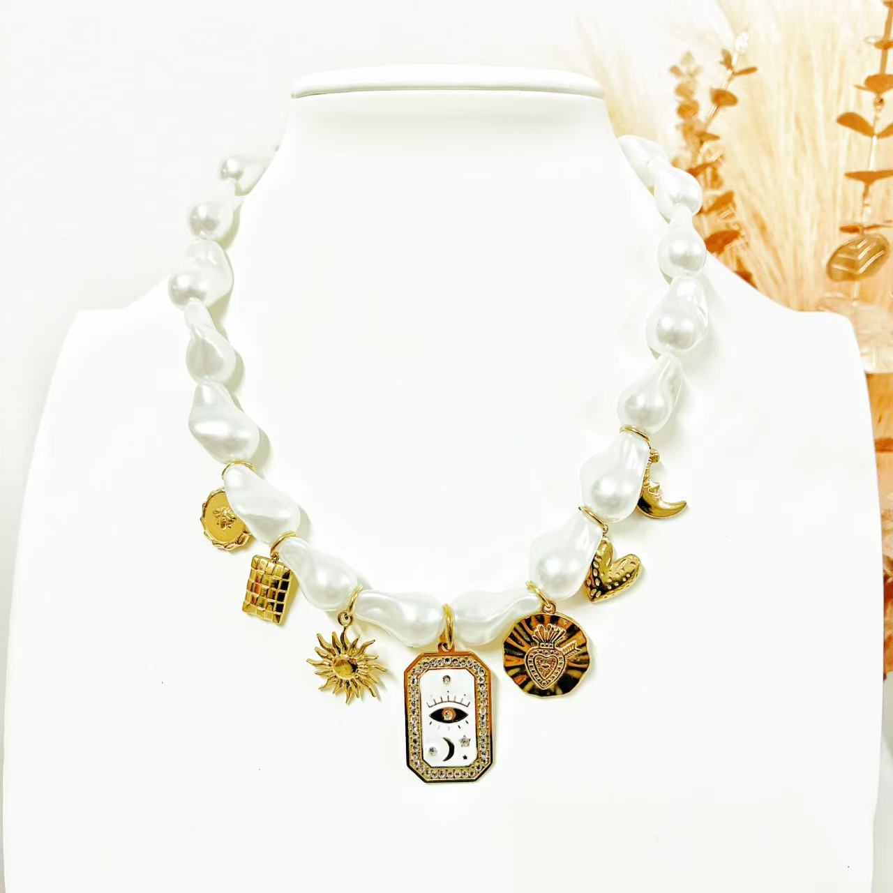 Tipo prodotto: Collana con perle irregolari e amuleti mistici