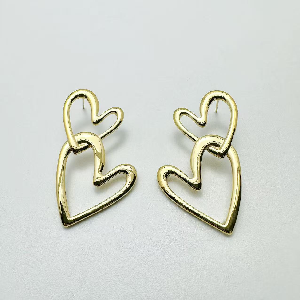 (O084)Orecchini doppio cuore in acciaio inox