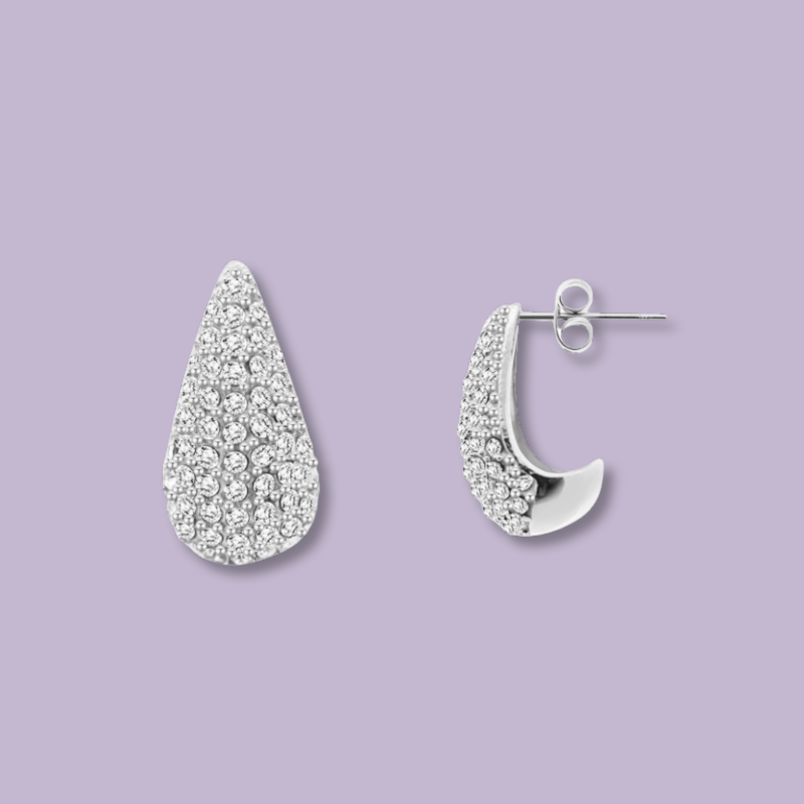 (O086)Orecchini goccioline con pave' in acciaio inox