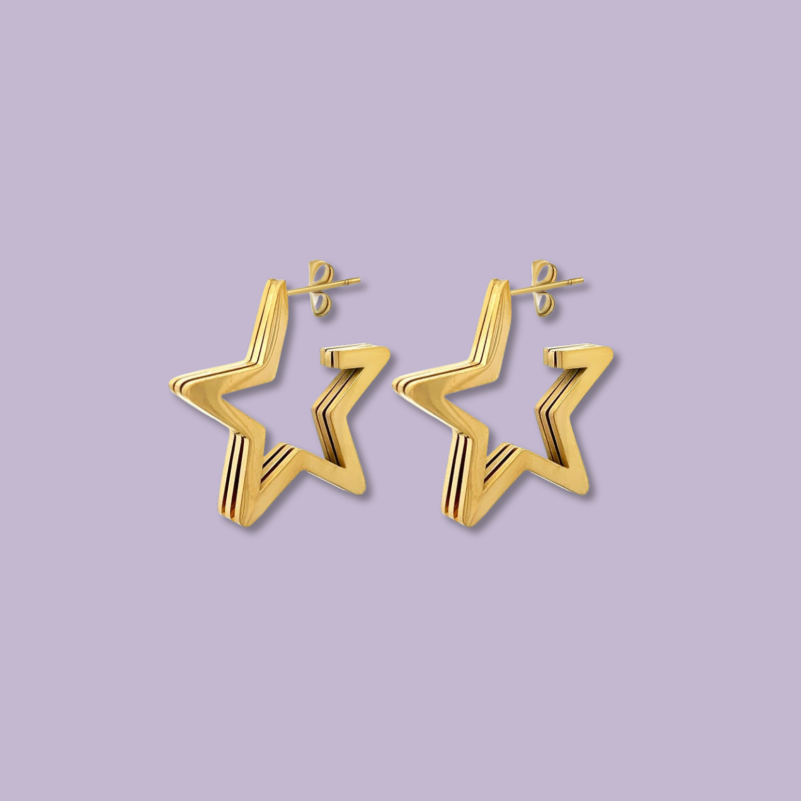 (O089)Orecchini stelle forma 3D in acciaio inox