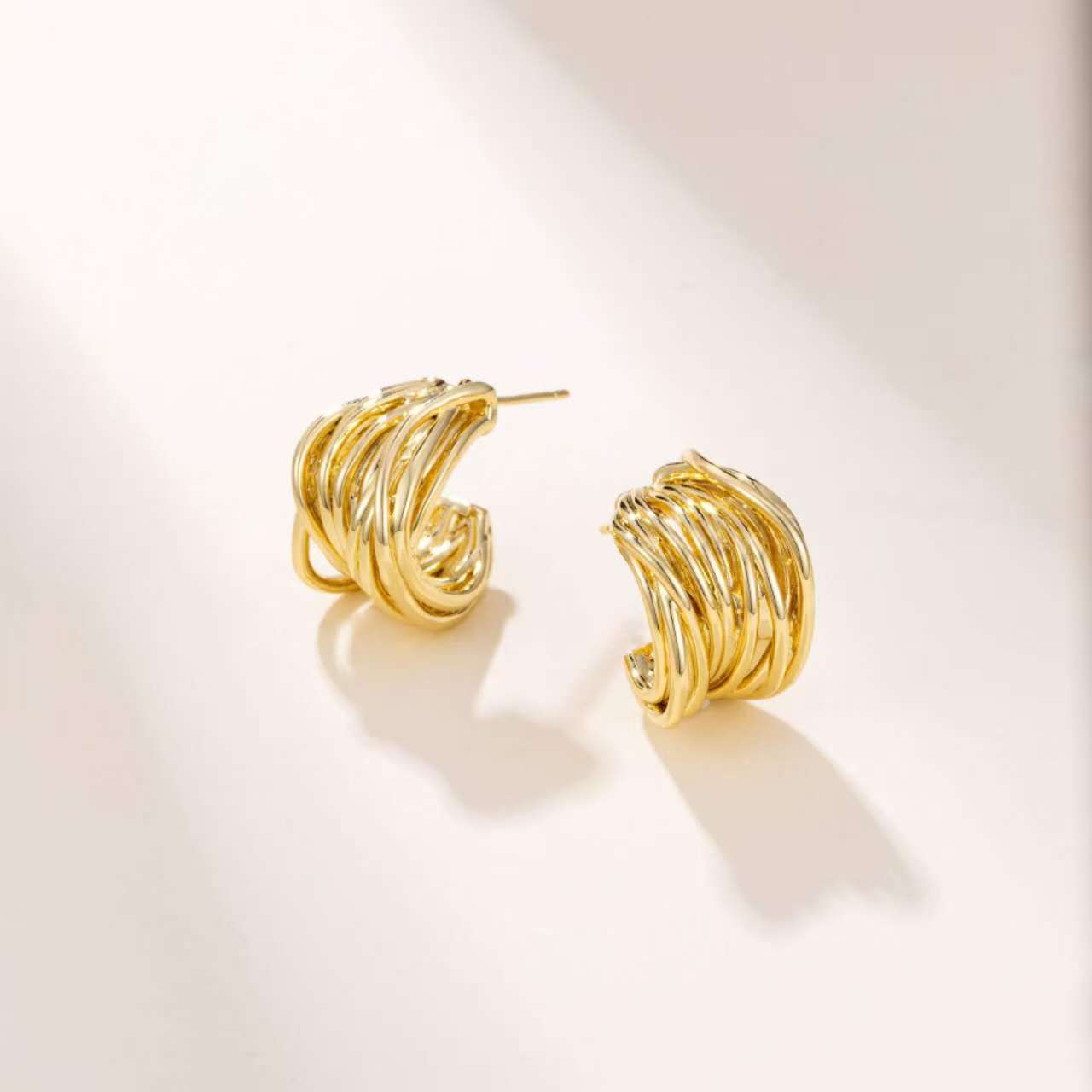 (O218)Orecchini Donna Cerchio Dorato Intrecciato