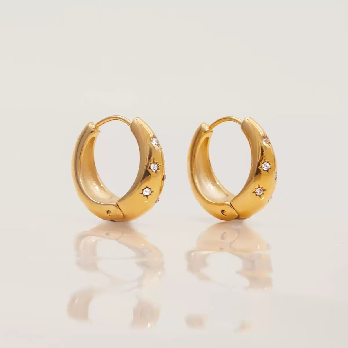 ✨Orecchini a Cerchi con Stelle Incise – Eleganza Sofisticata e Luminosità Delicata
