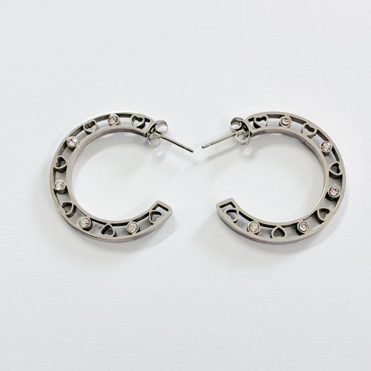 Questi orecchini a cerchio sono impreziositi da piccoli cuori traforati e zirconi luminosi incastonati lungo la struttura. Il risultato è un equilibrio perfetto tra delicatezza e carattere, ideale per chi ama i dettagli femminili con un tocco moderno.