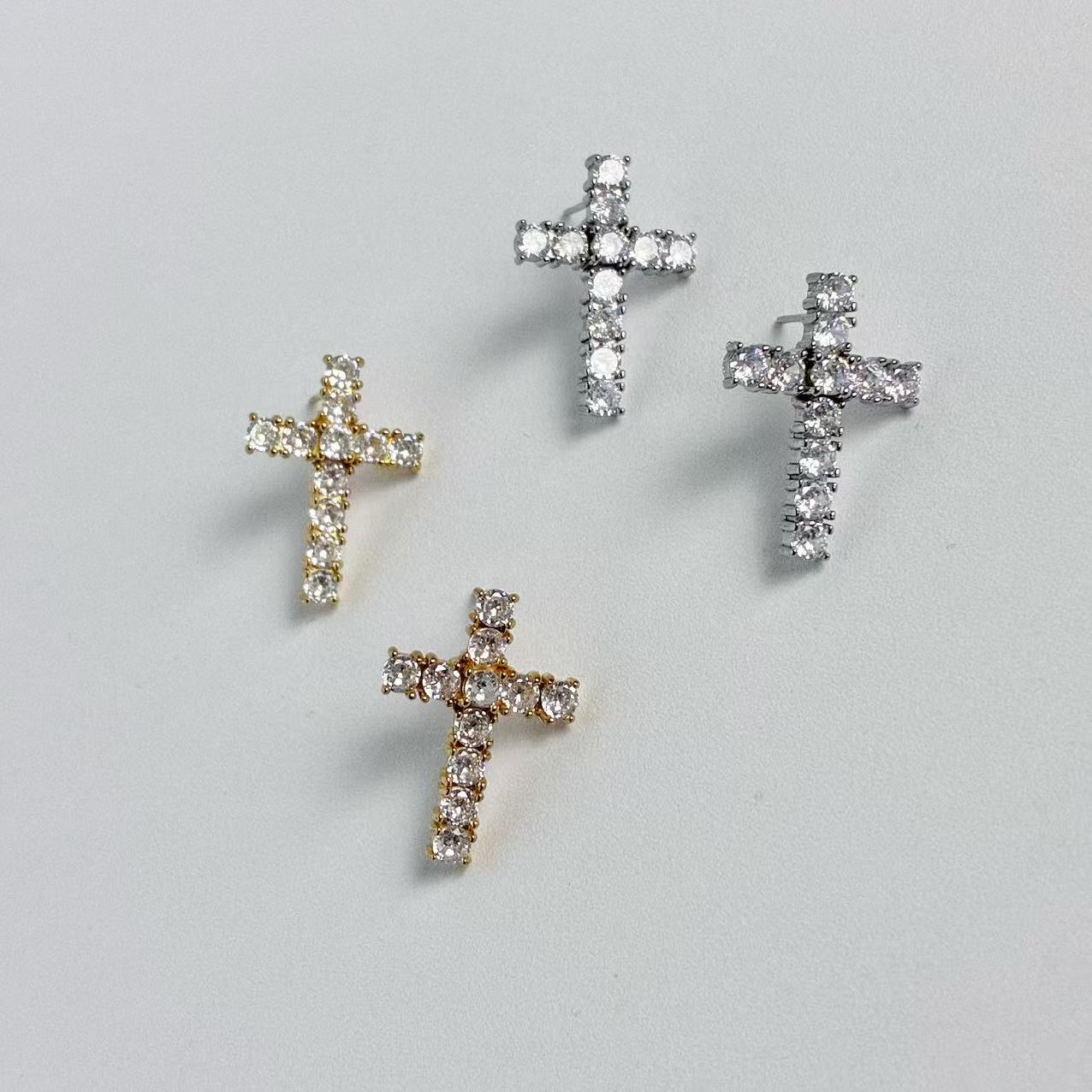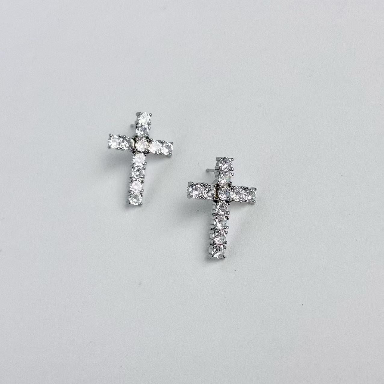 🌟 Orecchini a Croce con Zirconi Rotondi in Acciaio Inossidabile