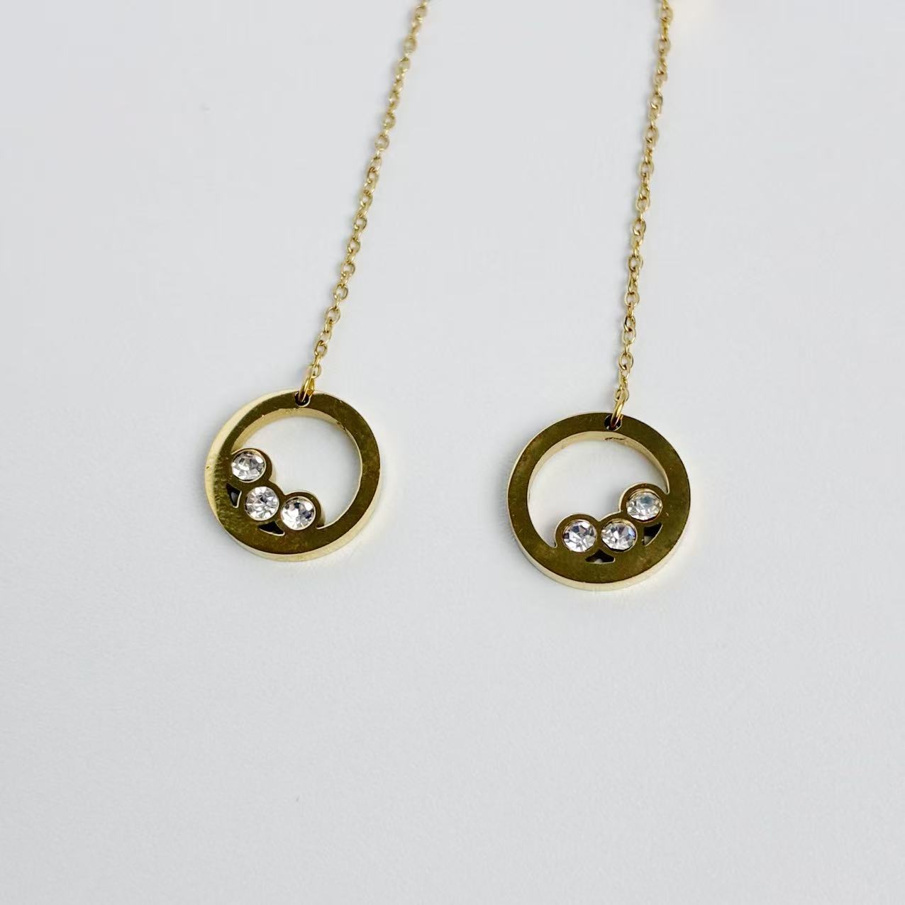 Eleganti e moderni, questi orecchini pendenti a cerchio dorato sono arricchiti da cristalli luminosi incastonati all’interno, per un design minimal ma raffinato. Realizzati in acciaio inossidabile, sono resistenti, ipoallergenici e perfetti da indossare ogni giorno o in occasioni speciali.