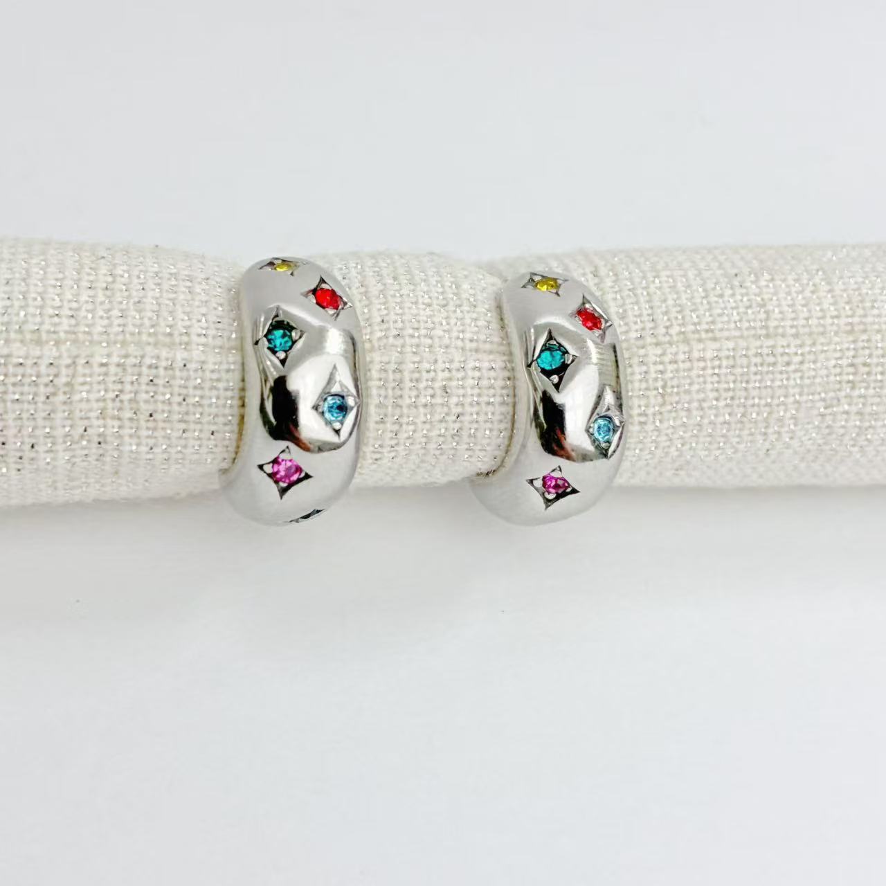 ✨ Orecchini “Colori Incisi” – Cerchi Dorati con Gemme Multitonali dal Fascino Artistico