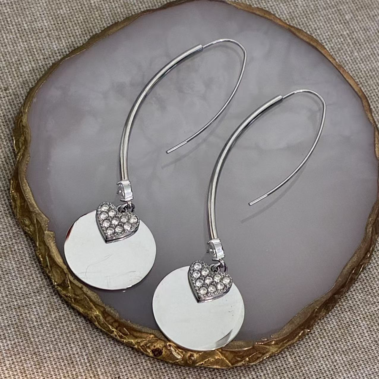 Questi orecchini dal design moderno combinano una linea essenziale e delicata con un dolce cuore pavé di zirconi. Il pendente rotondo aggiunge movimento e luce, creando un look elegante ma quotidiano.