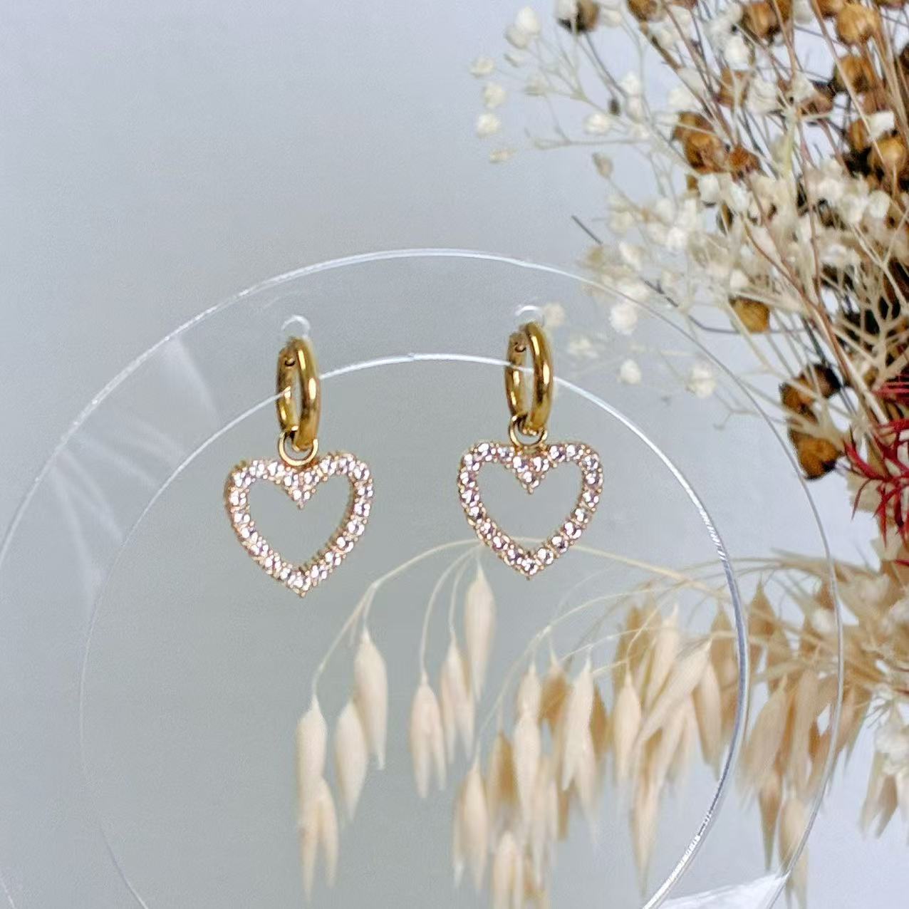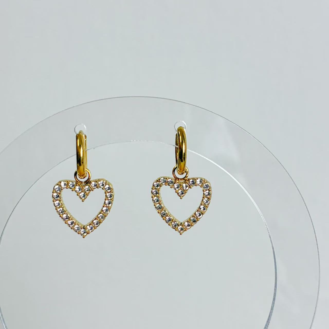 💎 Orecchini “Cuore di Luce” – Cerchi con Pendenti a Cuore di Zirconi