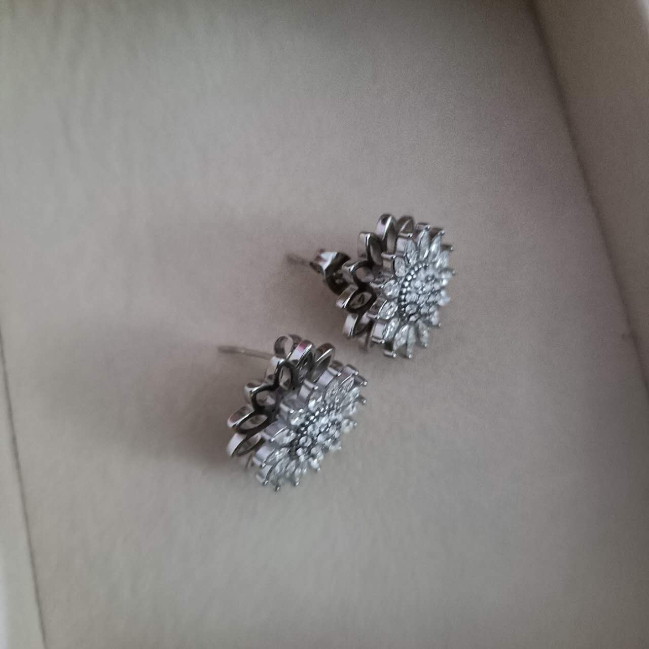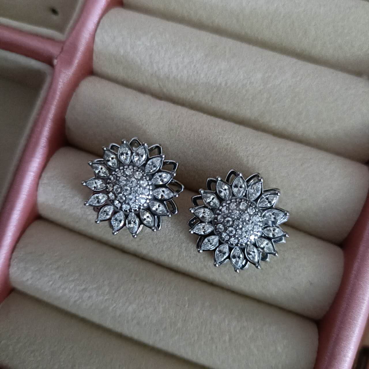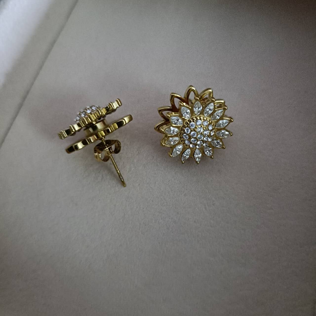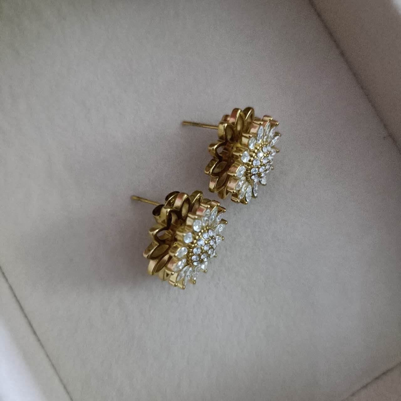Un paio di orecchini raffinati e luminosi, ispirati alla bellezza del girasole. Ogni petalo è impreziosito da pietre scintillanti che riflettono la luce con grazia, regalando un tocco di calore e sofisticatezza a ogni look.