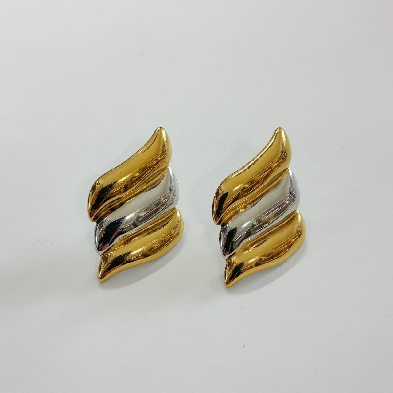 Questi orecchini presentano una splendida forma ondulata, che alterna fasce dorate e argento specchiate in un gioco armonioso di contrasti. Linee morbide e sofisticate li rendono perfetti per chi ama accessori eleganti ma con forte personalità.