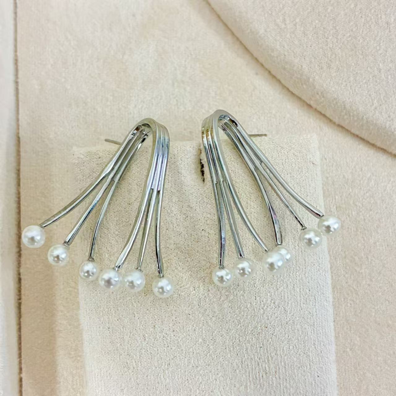 Questi orecchini in acciaio inossidabile reinterpretano la classicità delle perle con un tocco moderno, grazie alle linee fluide e leggere che donano un effetto dinamico e raffinato.