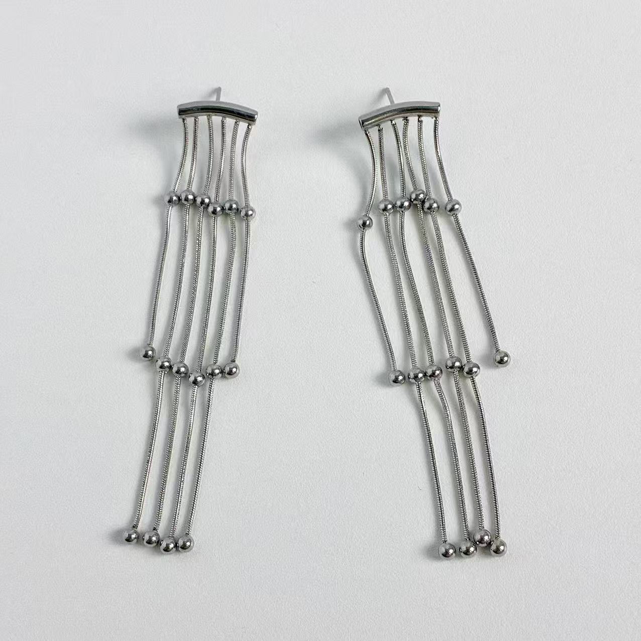 🌟 Orecchini Pendenti con Fili Sottili e Sfere in Acciaio Inossidabile