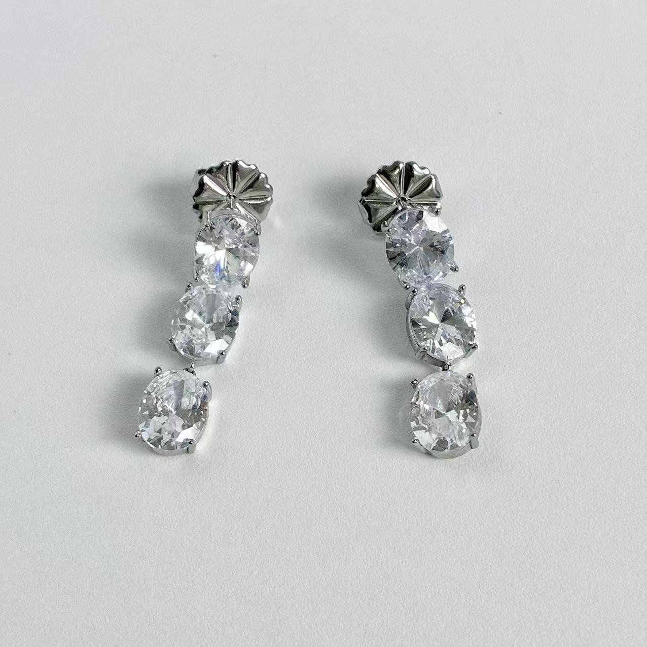 🌟 Orecchini Pendenti con Zirconi Ovali in Acciaio Inossidabile