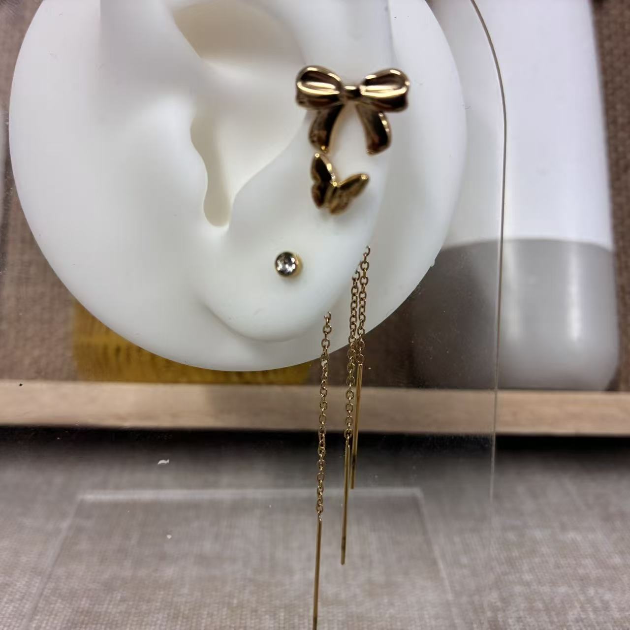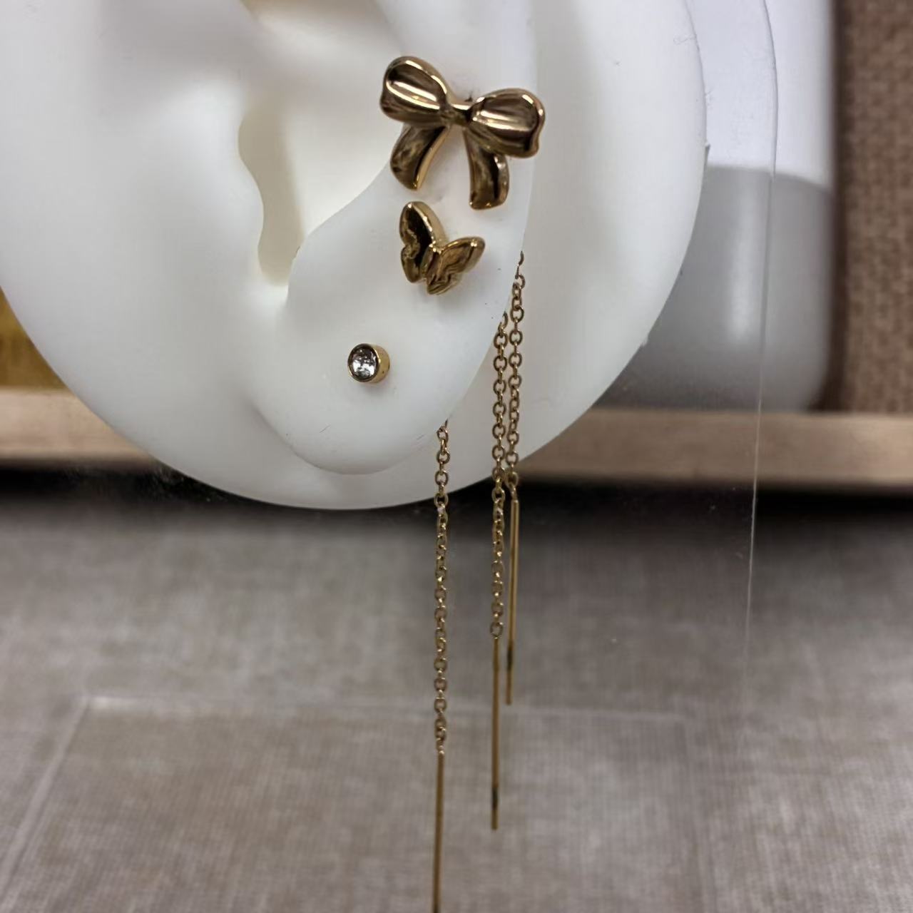 Un gioiello delicato e raffinato che unisce la dolcezza del fiocco alla modernità delle catene pendenti. Realizzato in acciaio inossidabile placcato oro, garantisce resistenza, brillantezza e uno stile senza tempo. Il design leggero e femminile lo rende perfetto per completare qualsiasi look, dal casual all’elegante.